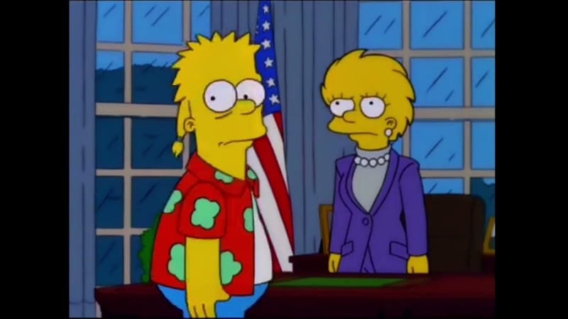 Trong một tập phim phát sóng vào năm 2000, có tựa đề "Bart to the Future," The Simpsons gây sốc khi tiên đoán Donald Trump trở thành tổng thống Mỹ. Trong tập này, Lisa Simpson trở thành tổng thống và nói rằng chính quyền của cô phải đối mặt với một cuộc khủng hoảng tài chính nghiêm trọng do chính quyền Trump trước đó để lại.